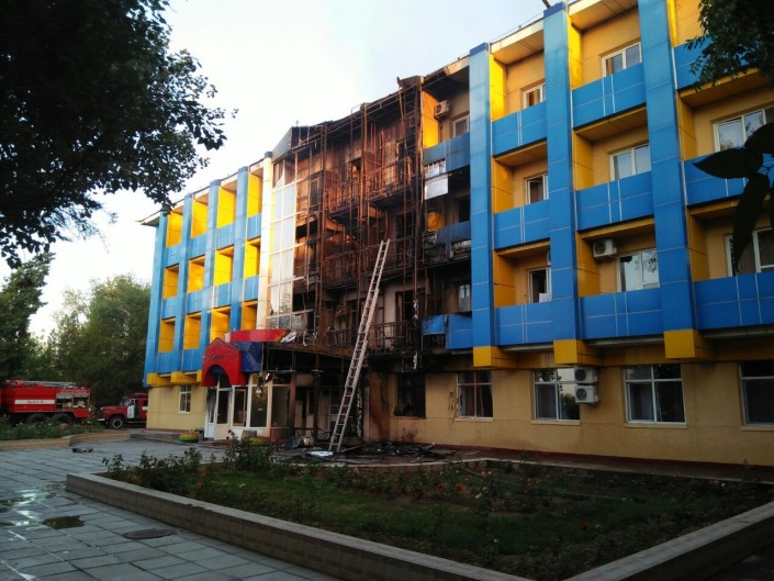 По данным пресс-службы, информация о пожаре в четырехэтажном здании санатория поступила 4 июля в 18.54. "Произошло загорание в трех номерах. Возгорание началось на втором этаже, затем огонь перешел на третий и четвертый этажи с переходом на кровлю здания", - сообщили в ДЧС.