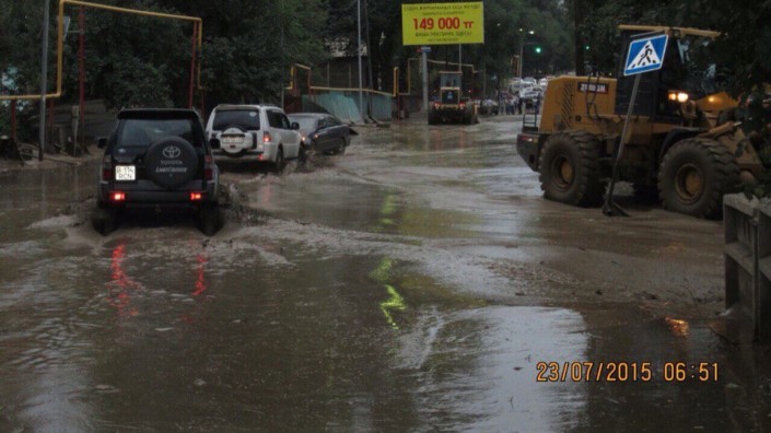 7.30. Между тем, очевидцы рассказывают об увиденном. По словам жителя микрорайона Таусамалы, он проснулся ночью от шума воды. "Проснулся в 2.30, был сильный шум, позвал знакомый, побежали к нему. Увидели, что по дороге течет вода с двух сторон с большим напором, - рассказывает очевидец. - Вся жизнь перед глазами пронеслась, наш дом не пострадал, но соседей затопило".