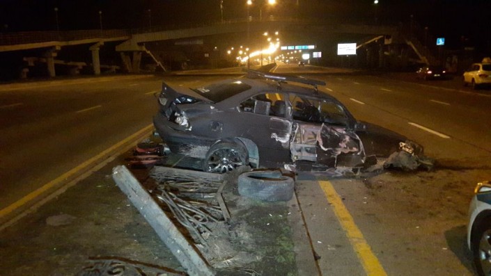 ДТП произошло на Восточной объездной дороге (ВОАД), перед Кульджинским трактом. Как рассказал водитель BMW, он двигался в северном направлении в среднем ряду. Впереди ехавшая автомашина Honda внезапно затормозила, после чего, в попытке уйти от столкновения с ней, он "ушел" влево. Водитель не справился с управлением и снес четыре секции металлического ограждения.