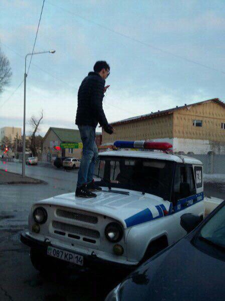 В Сети появились фото павлодарца, сделавшего селфи на крыше полицейского авто