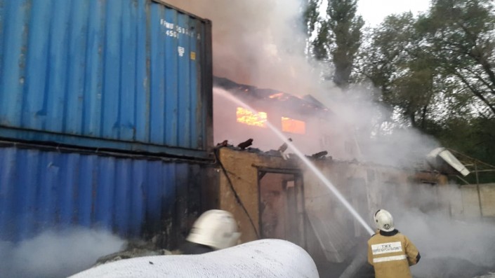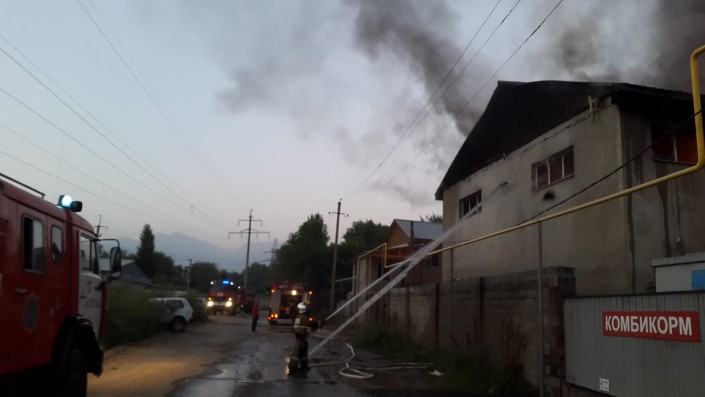"Личный состав и специальная техника ДЧС наращивались по повышенному номеру 1-бис, организован подвоз воды двух цистерн "Алматы Тазалык". Тушение осложнялось обрушением конструкций здания с западной стороны, отсутствием источников водоснабжения на территории объекта. Принятыми мерами пожарных удалось предотвратить распространение огня на соседний склад по хранению комбикормов на территории частного жилого сектора. В 6.28 пожар локализован, ликвидирован в 7.09. Всего задействовано 50 человек личного состава, 12 единиц техники", - говорится в сообщении.