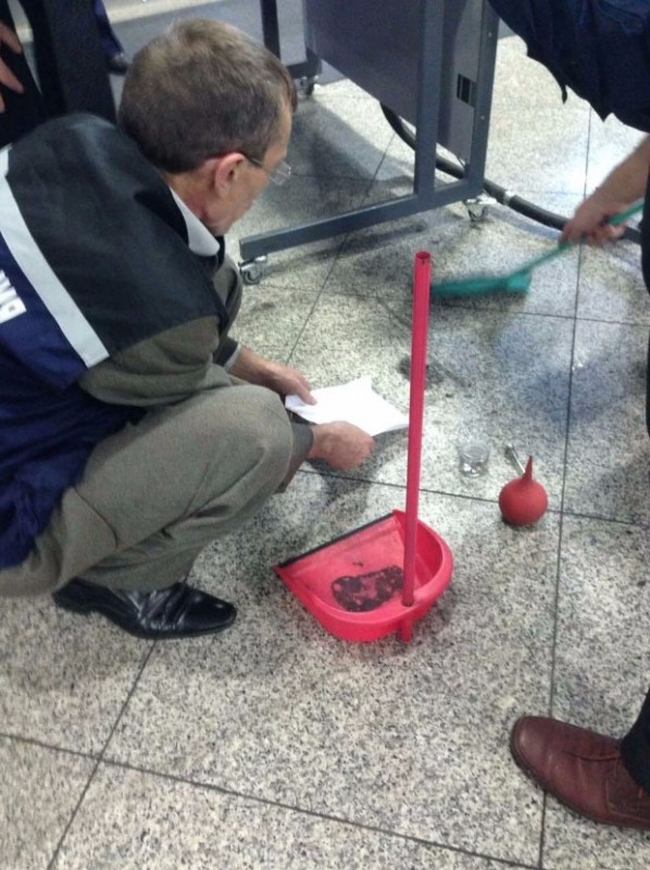 В это же время в помещение зашли и пассажиры, которые сделали снимки, разошедшиеся в Интернете. "Это даже не уборка ртути. Это просто мытье полов с контрольной проверкой", - рассказал специалист. В целом, по его словам, вся операция заняла около часа. Сейчас решается вопрос утилизации собранной ртути.