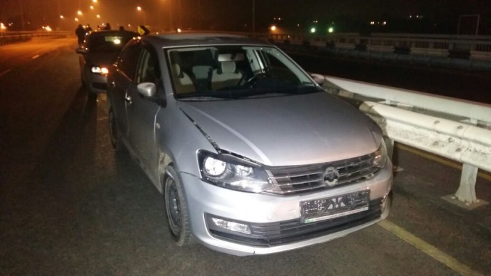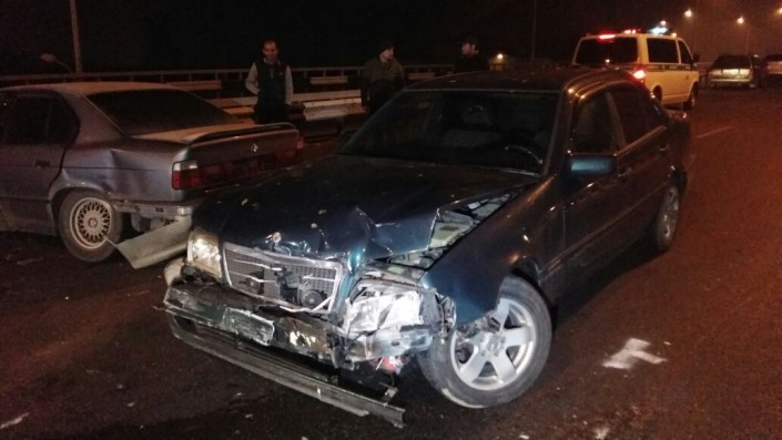 Тем временем Volkswagen Polo поднимался на юг по этому же мосту и столкнулся с BMW. Уже намного позже, на глазах присутствующих, в BMW на скорости врезается Mercedes-Benz. По предварительной версии, ДТП произошло из-за гололеда на дороге.