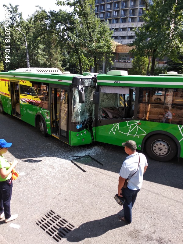 22 июля 2018 года два автобуса столкнулись лоб в лоб. Авария произошла утром по проспекту Достык, между улицами Курмангазы и Абая в Алматы, напротив гостиницы Казахстан. Столкнулись два маршрутных автобуса № 12.
