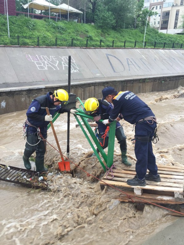 Служба спасения акимата Алматы ведет очистку шлюзов на реке Есентай.