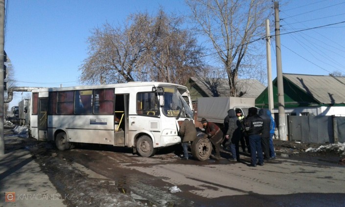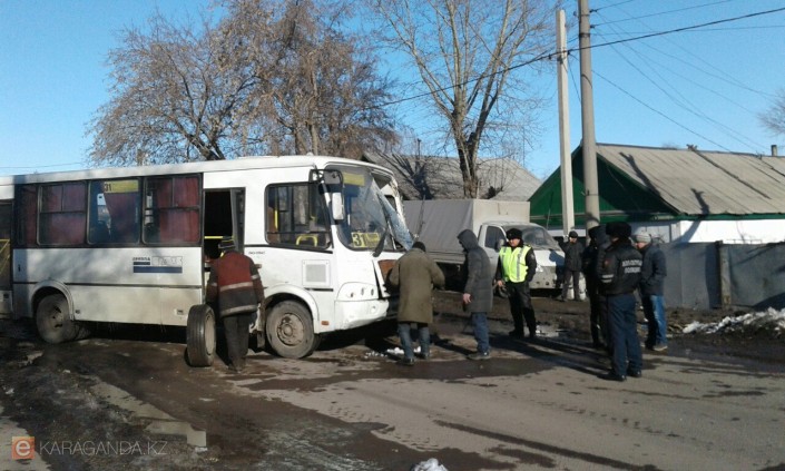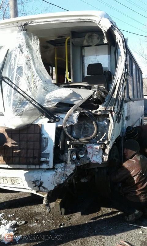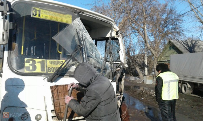 Днем, 21 марта, в Караганде по улице Космонавтов лоб в лоб столкнулись маршрутный автобус под номером 31 и микроавтобус Mercedes красного цвета, сообщает eKaraganda.