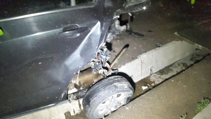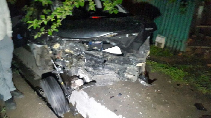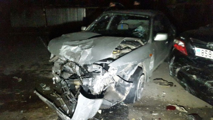 ДТП произошло ночью по улице Яссауи. По словам очевидцев, Subaru на большой скорости протаранил припаркованные Chevrolet и Toyota Camry.