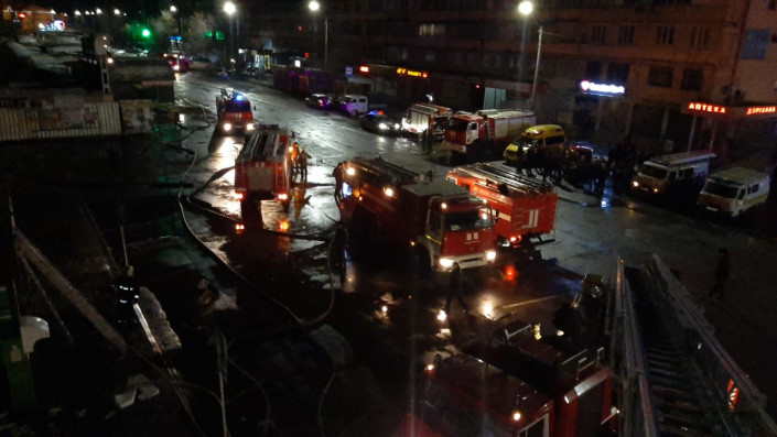 "По прибытии пожарных подразделений установлено, что происходит открытое горение деревянного потолочного перекрытия на втором этаже. Принятыми мерами пожар ликвидирован в 03.31 на площади 1187 квадратных метров. Жертв и пострадавших нет. Причина пожара устанавливается", - сообщил Нурахметов.