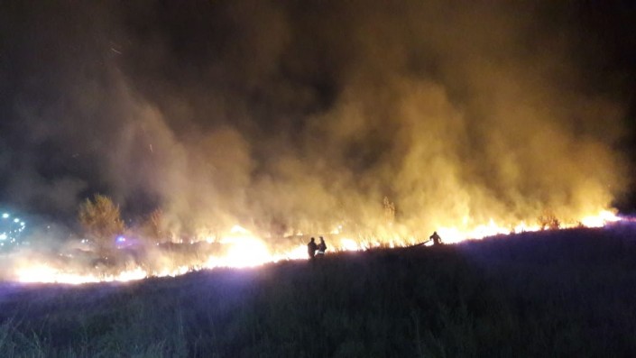 Пожар произошел вечером 14 сентября выше проспекта Аль-Фараби, не доезжая улицы Мустафина в восточном направлении.