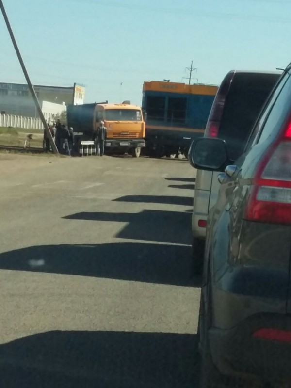 Тепловоз столкнулся с КамАЗом в Астане Фото очевидцев