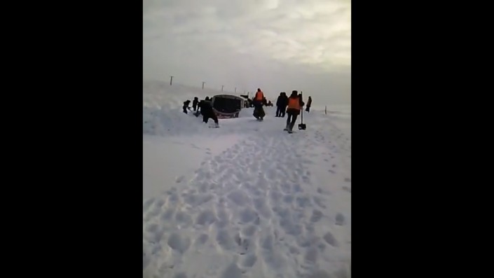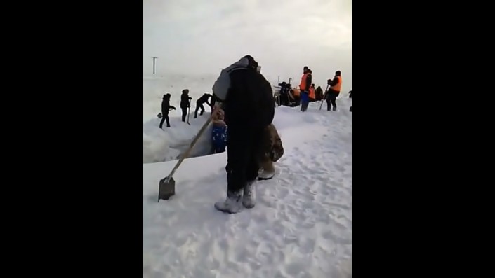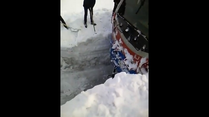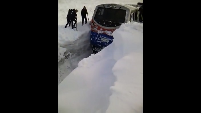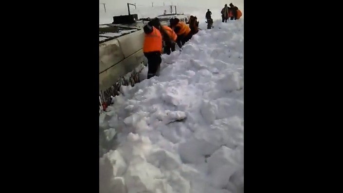"Тепловоз застрял после бурана. Приехали откапывать. Вон какая глубина", - слышен голос за кадром.