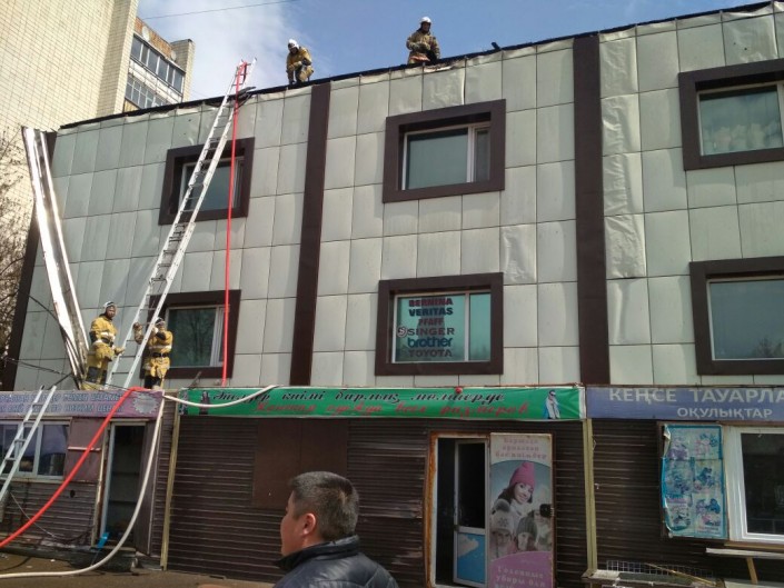 По данным спасателей, пожар начался в 12.35 в Кокшетау. Произошло загорание кровли в двухэтажном торговом доме "Триумф". Площадь пожара 450 квадратных метров.