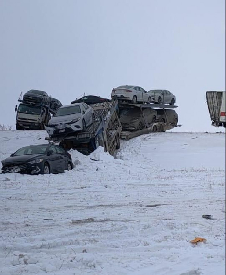 Авария с участием трех автовозов и одного грузового авто произошла в Актюбинской области, передает Tengrinews.kz.