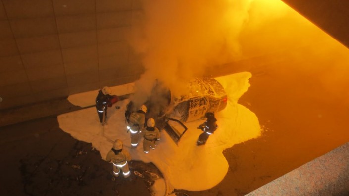 Автомобиль сгорел в Астане при выезде из подземного переезда на проспекте Республики, передает корреспондент Tengrinews.kz со ссылкой на официального представителя КЧС МВД РК Руслана Иманкулова.