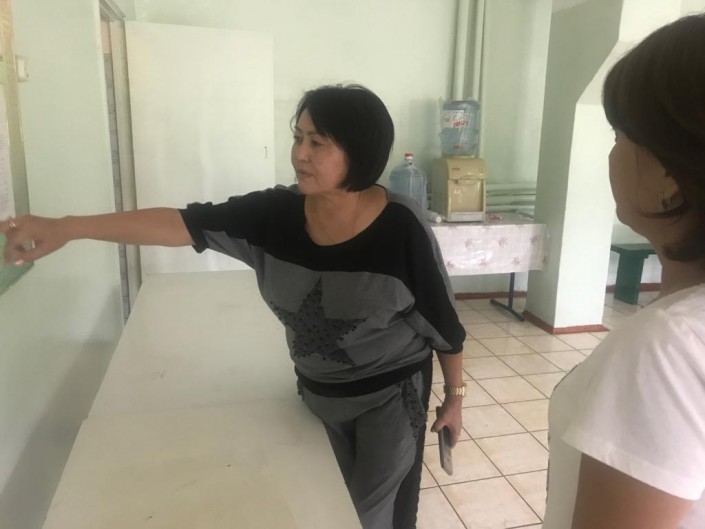 "Школа рассчитана на 624 учащихся. Поэтому мы можем легко принимать жителей. Сейчас человек, который снимает в аренду кухню, уехал за продуктами. С приездом населения мы начнем готовить еду. Мы готовы принять всех, будь то 100 человек или 200. И постельные принадлежности тоже приносят. Сейчас мы готовим спортивный зал на 200 человек", - рассказывает директор школы Гульнар Сандыкбаева.