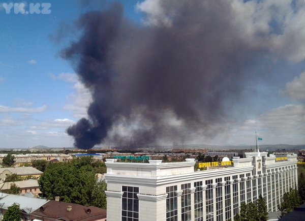 О чрезвычайном происшествии сообщили пользователи соцсетей, поделившиеся фотографиями и видео. Центр Усть-Каменогорска окутан черными клубами дыма.