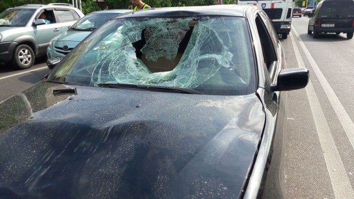 Совершив наезд, по информации очевидцев, BMW начал скрываться с места происшествия и, не доезжая до улицы Момышулы, врезался в Toyota Previa.