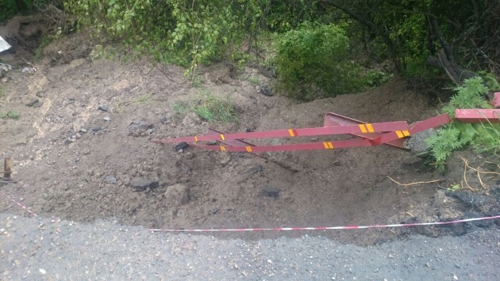 Как сообщает корреспондент программы "Территория происшествий" в настоящее время участок обрушенной автодороги оцеплен полицейскими, движение закрыто в обоих направлениях. Сообщается, что никаких восстановительных работ на месте происшествия не проводится.