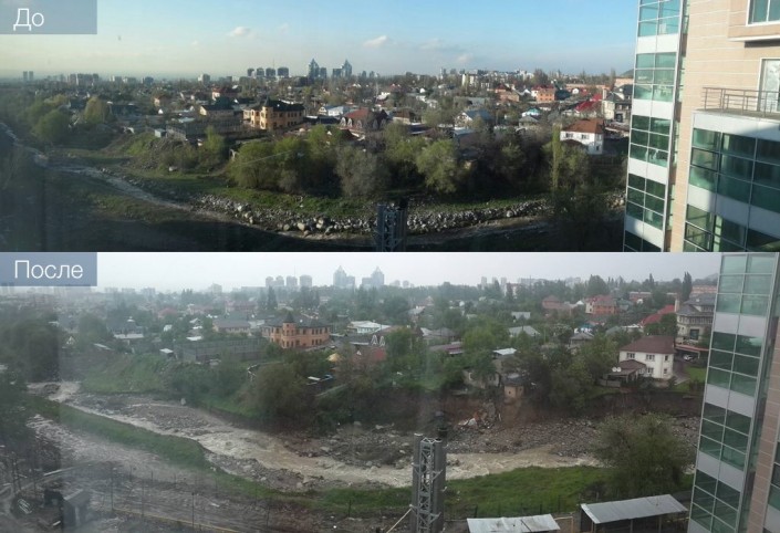В Алматы из-за проливных дождей баня обрушилась в реку кадры из видеоролика Facebook