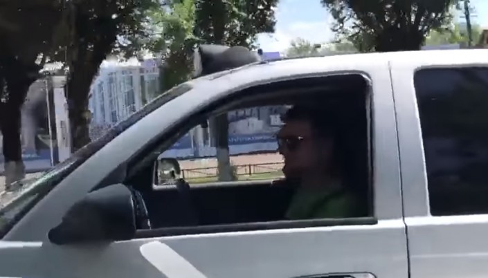 Автомобиль ездил по центру города с открытым бассейном, в котором отдыхали четверо молодых людей в трусах. На размещенных в Сети кадрах видно, что машина поворачивает с улицы Тургута Озала на проспект Абая.