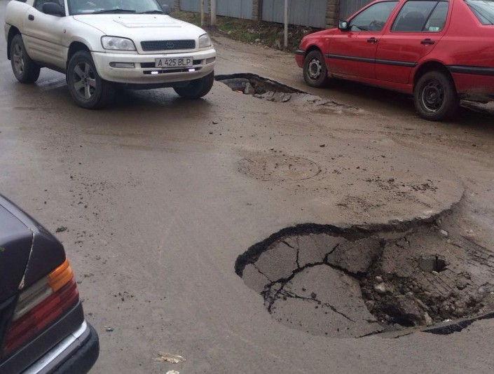 В Алматы проваливается новый асфальт