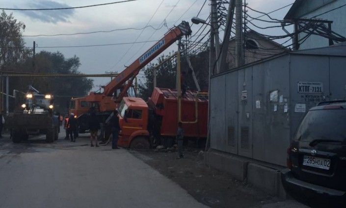 Добавим, что 16 октября на том же месте застрял КамАЗ. Большегруз пришлось вытаскивать с помощью специальной техники.
