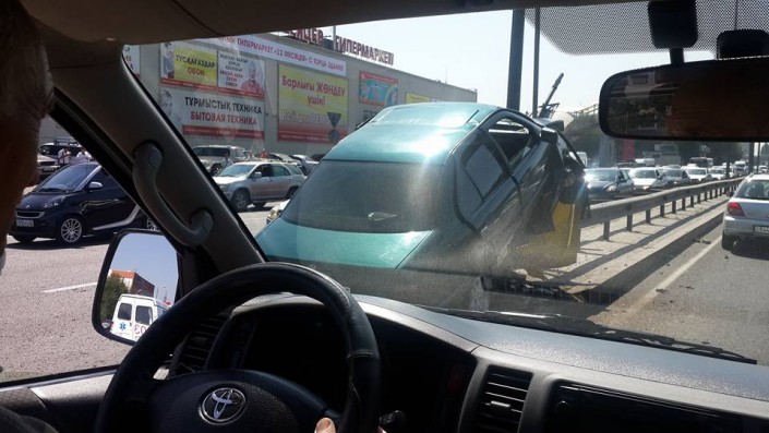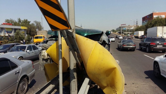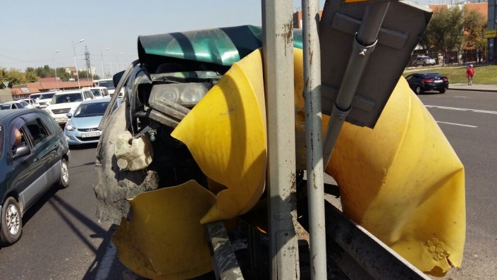 В Алматы водитель выехал на "встречку" и протаранил отбойник