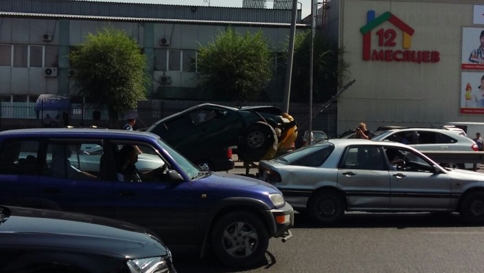 В Алматы водитель выехал на "встречку" и протаранил отбойник Фото программы "Территория происшествий"