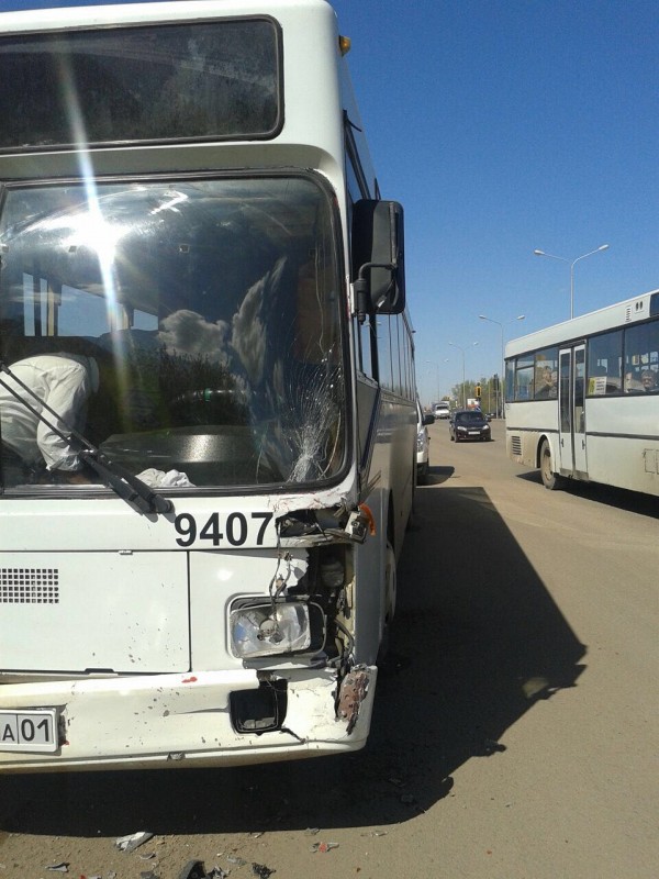 В Астане автобус столкнулся с внедорожником, передает корреспондент Tengrinews.kz.