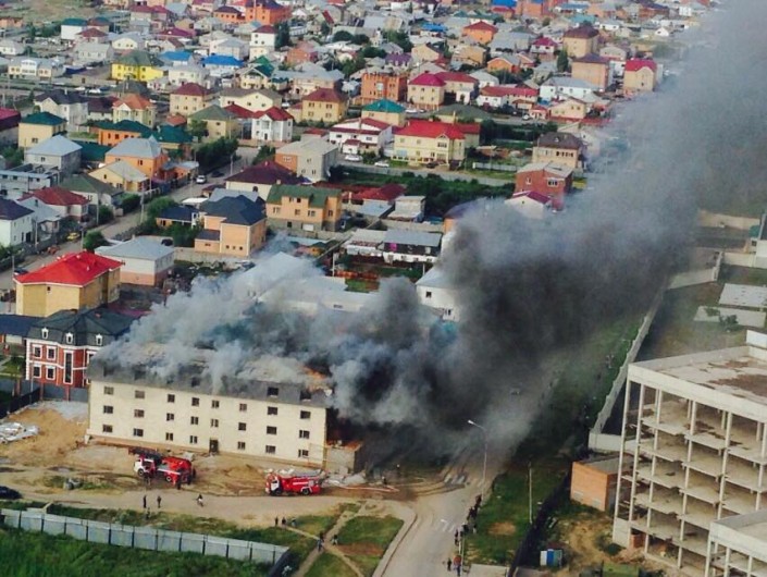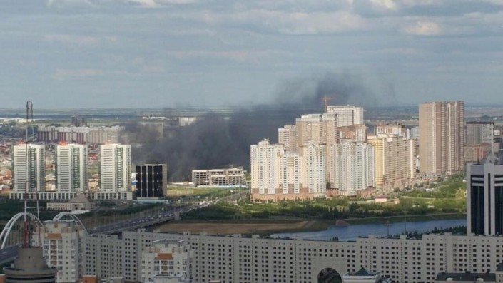 В Астане горит кровля трехэтажной хозпостройки, площадь пожара составляет 250 квадратных метров, передает корреспондент Tengrinews.kz