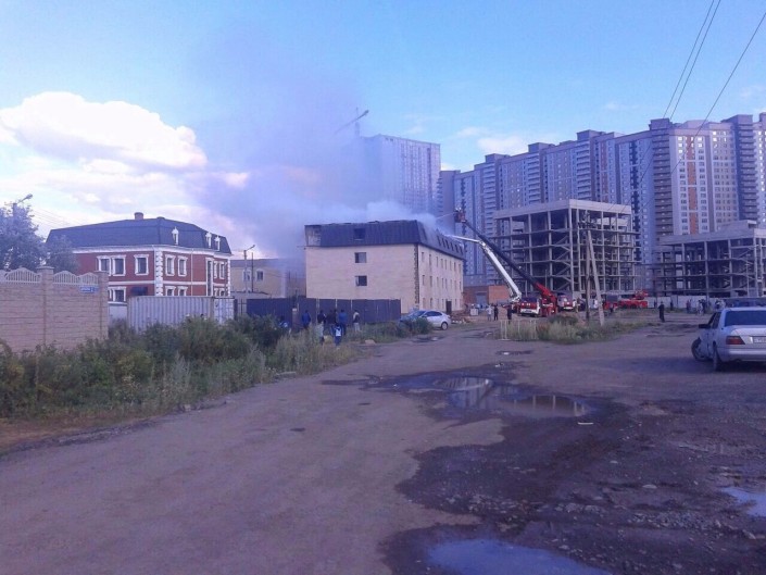 "В 18:23 поступило сообщение о том, что горит кровля новостроящейся хозпостройки по улице Акыртас. На место пожара прибыла пожарная часть №10, работают четыре единицы техники, 24 человека личного состава. В данный момент ведутся работы по тушению пожара. Площадь горения пожара - 250 квадратных метров", - сообщили в пресс-службе ДЧС Астаны.