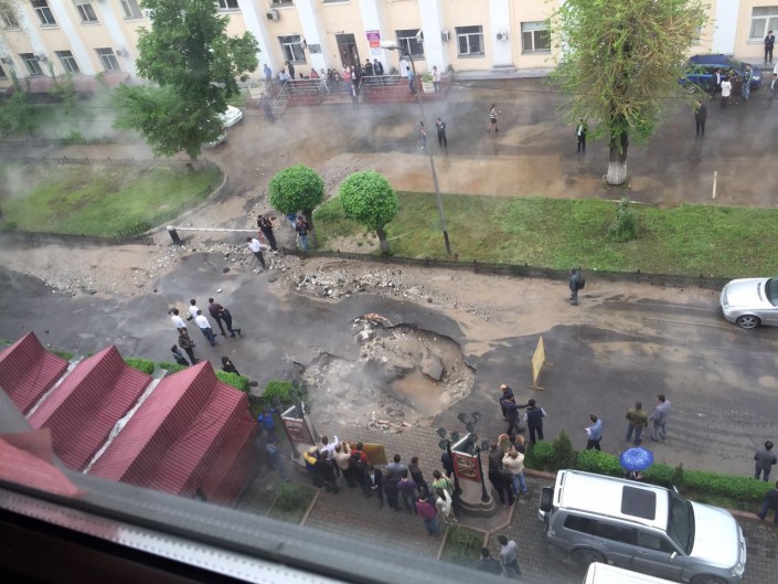 В начале января в Алматы прорвало трубу с горячей водой на пересечении улиц Казыбек би и Калдаякова. На месте образовался туман из-за клубов пара, который поднимался из люка и арыков. Горячая вода разливалась по тротуару и проезжей части.