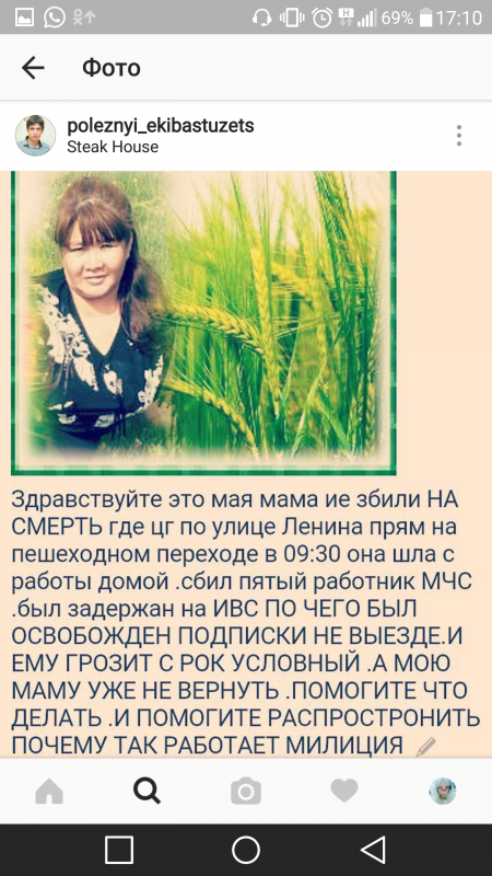 Как рассказали близкие погибшей, женщина возвращалась с работы примерно в 21.30. Но когда она переходила дорогу по пешеходному переходу уже на мигающий зеленый свет, ее сбила машина. Женщина скончалась на месте. Тело отлетело почти на 30 метров от места столкновения. Исходя из этого, родственники делают вывод, что скорость у машины была очень высокая.