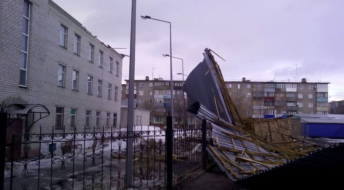 "В 18.10 информация о срыве кровли поликлиники № 2 по улице Кочегарка 3 поступила в ДЧС области. В 18.15 наша оперативная группа выехала на место происшествия. По прибытии на место установлено, что сорвана крыша поликлиники. В результате чего фрагментами сорванной крыши накрыло одноэтажный жилой дом. Площадь сорванной крыши 550 квадратных метров. Жертв и пострадавших нет", - сообщили в пресс-службе ДЧС области.