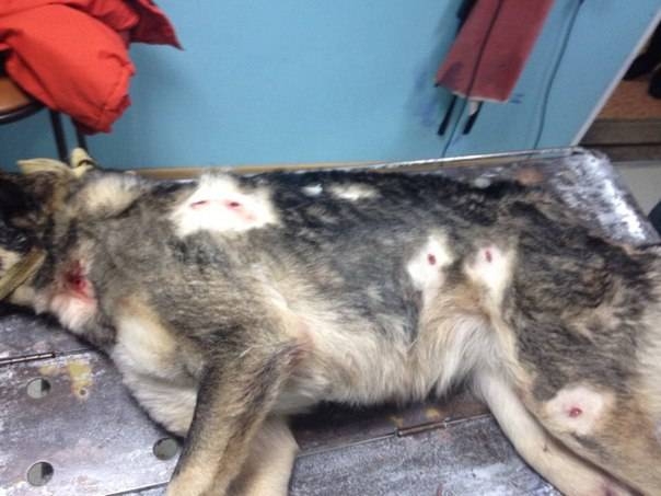 С заявлением в полицию обратились участники общественного фонда "Сердца Павлодара", которые сообщили о раненой собаке, найденной в одном из дворов многоэтажек Павлодара. Как рассказали общественники, животное истекало кровью от огнестрельных ран.