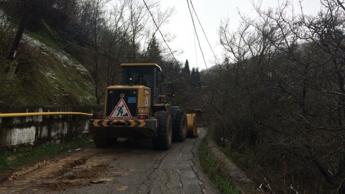 Некоторое время автодорога по улице Алмалы была полностью перекрыта, но к настоящему моменту, после очистки грунта прибывшей техникой, она вновь открыта.