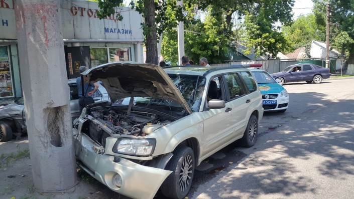 Авария произошла на проспекте Сейфуллина в районе улицы Иркутская. По информации корреспондента, автомобиль Subaru двигался по проспекту в южном направлении. У него на ходу лопнуло колесо, из-за этого авто "понесло" и он врезался в припаркованный Mitsubishi Galant. От удара Galant врезался в здание магазина. Пострадала пожилая женщина, которая находилась внутри автомобиля Subaru. Ее госпитализировали.