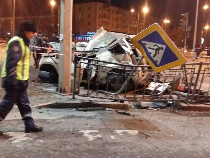 В Астане в жутком ДТП пострадали четыре человека. Очевидцы прислали в редакцию Tengrinews.kz фото и видео с места происшествия.