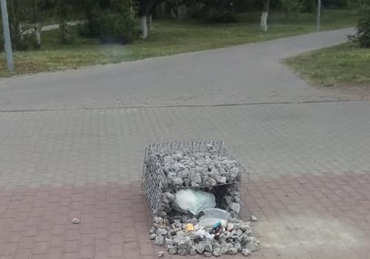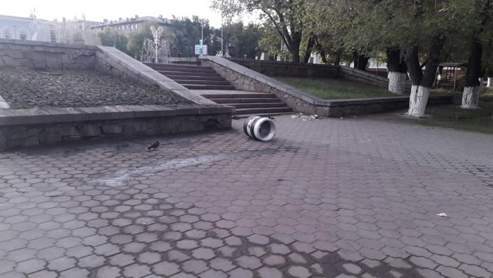 Они повредили памятник погибшим шахтерам, перевернули мусорные баки и скамейку.