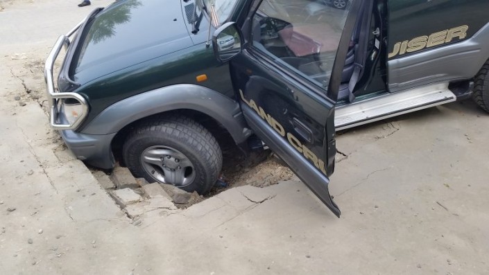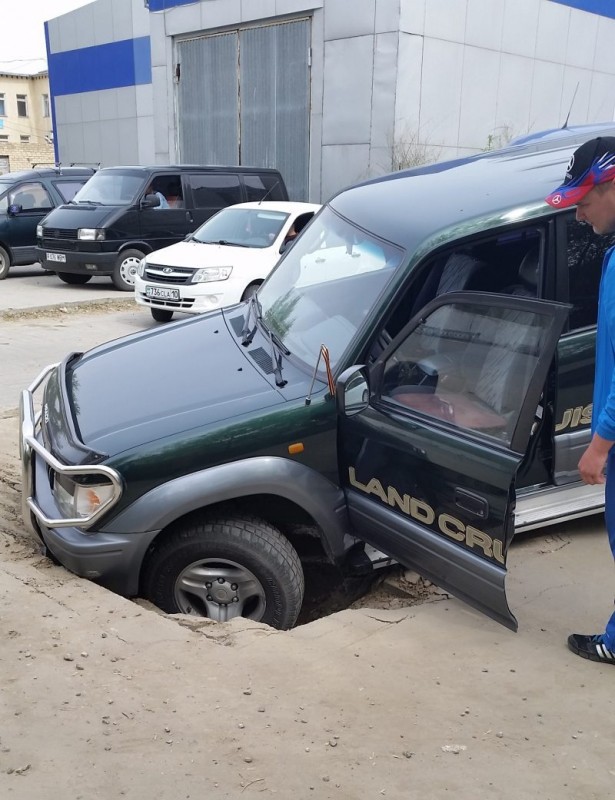 Женщина-водитель рассказала, что хотела припарковаться. Сдавала назад, потом поехала вперед и передними колесами автомобиль провалился. "Хотелось бы предупредить всех водителей Костаная. Будьте бдительны на наших дорогах. Машина провалилась на ровном месте", - отметила автолюбительница.