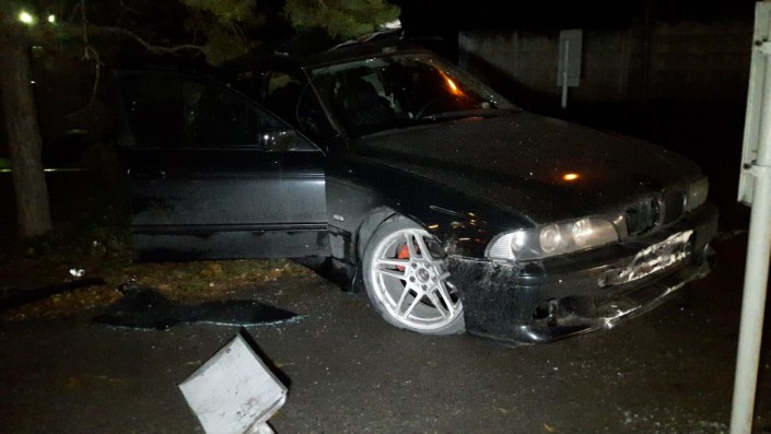Авария произошла на проспекте Суюнбая. Как рассказал водитель BMW, на затяжном повороте он не справился с управлением, и автомобиль занесло на мокрой дороге. В результате машина врезалась в фонарный столб.