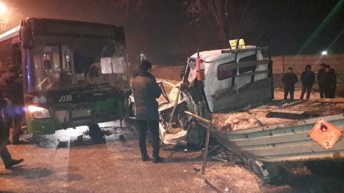 Водитель "Газели" погиб в страшном ДТП с участием автобуса в Алматы