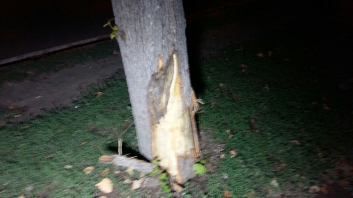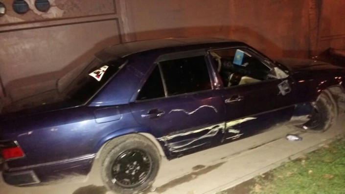 Водитель машины выехал на тротуар по улице Райымбека со дворов (с улицы Чайковского). Он сбил мужчину и врезался в забор газетного киоска. Когда машина вышла из строя, он остановился.