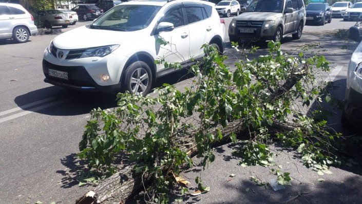 Инцидент произошел на проспекте Абая, не доезжая до улицы Манаса. Водитель Peugeot двигался в западном направлении по Абая, когда на авто упало дерево, повредив лобовое стекло и капот. Водитель автомобиля был госпитализирован.