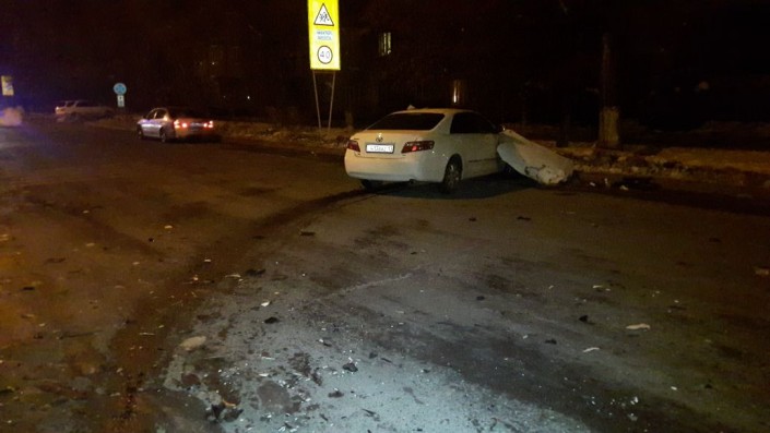 По информации очевидцев, водитель Lexus двигался в северном направлении по Шарипова. На пересечении с улицей Казыбек би на полной скорости в него врезалась Toyota Camry, водитель которой проигнорировал или не заметил знаки "Стоп" и "Уступи дорогу". От удара Lexus отлетел на обочину и снес несколько дорожных знаков.