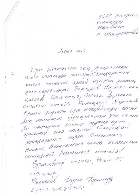 После прибытия сотрудников ЧС войсковые наряды обеспечивали безопасность до окончания тушения пожара. "За умелые действия и решительность, проявленные при эвакуации жителей, военнослужащие были отмечены благодарственными письмами", - сообщили в пресс-службе Нацгвардии РК.