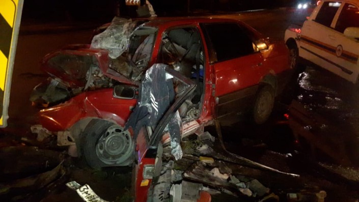 Авария произошла в ночь 24 августа на пересечении проспекта Райымбека и улицы Емцова. Водитель Volkswagen по невыясненным причинам не справился с управлением и на полном ходу врезался в столб.