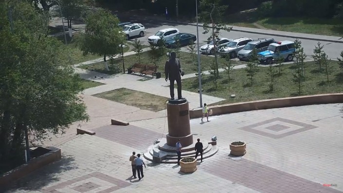Двое молодых людей взобрались на памятник казахскому поэту Касыму Аманжолову, установленный у входа в центральный парк в Караганде. Нетрезвые парни позировали, кривлялись на камеру - хулиганов фотографировала приятельница. Инцидент попал в поле зрения камер уличного наблюдения. В итоге приехавшие полицейские задержали и оштрафовали нарушителей правопорядка, сообщает "Новый Вестник".