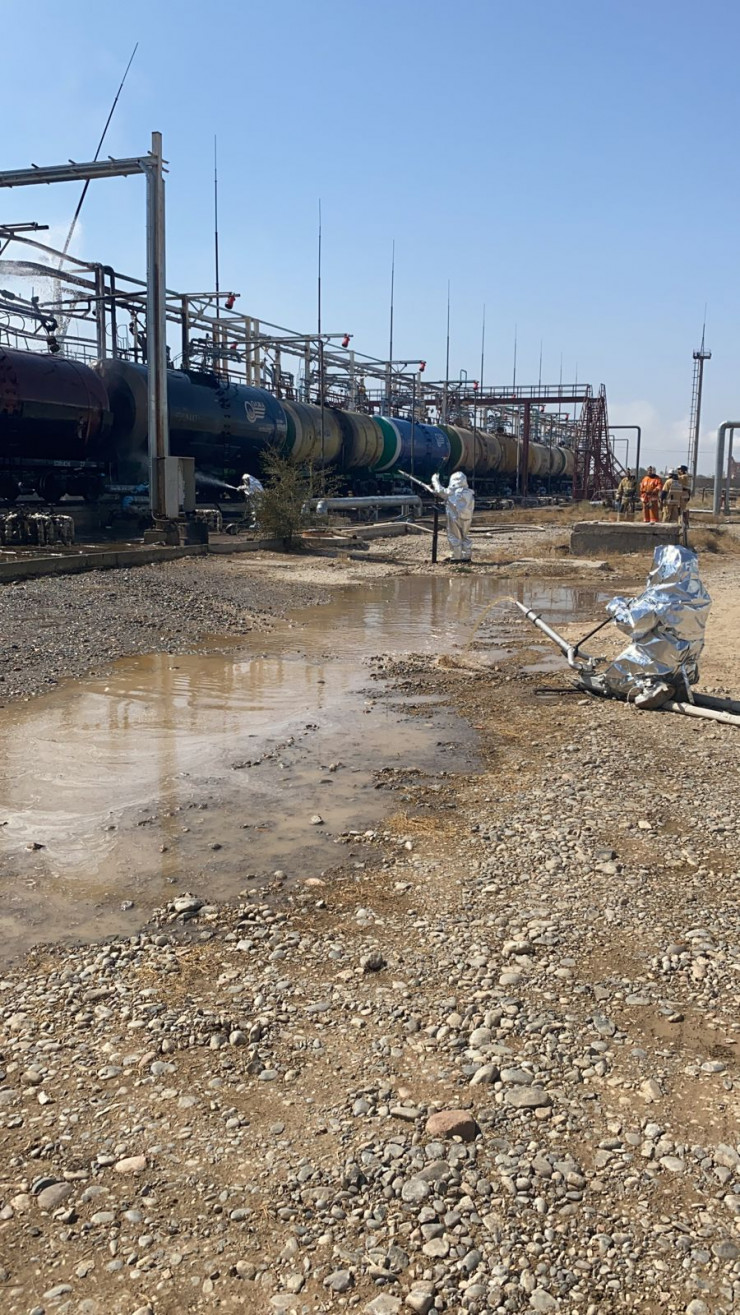 В 14.04 часов удалось ликвидировать пожар в вагоне, в котором находилась цистерна с бензином. В ликвидации пожара задействованы 47 сотрудников и 10 единиц техники, пожарный поезд ДЧС Туркестанской области и Шымкента.