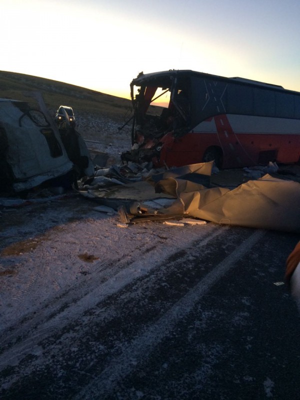 Как сообщает портал Motor.kz, из-за гололеда на трассе столкнулись автобус и ГАЗель. По предварительным данным, в результате ДТП скончались двое человек, а водитель ГАЗели находится в тяжелом состоянии. Автомобилисты предупреждают о сильном гололеде на трассе. Портал отмечает, что сотрудники дорожно-патрульной полиции выясняют подробности аварии.
